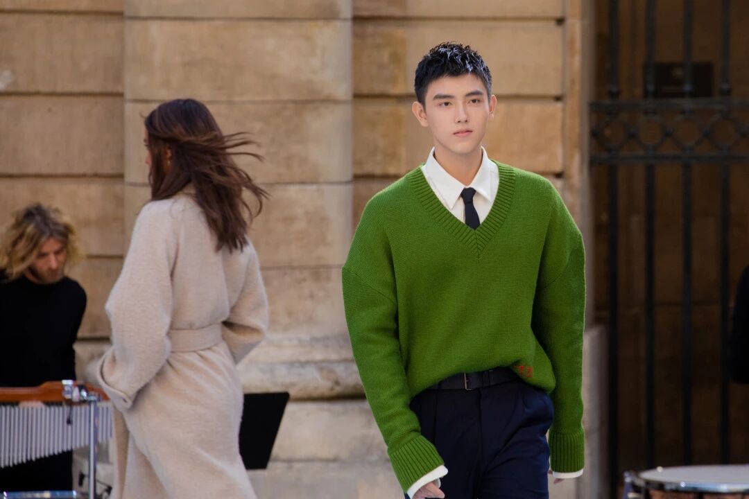 牛油果绿与深蓝色的搭配彰显出少年的阳光青春感,这让秀场上的他阔步之间更是自信挥洒无敌元气神采。