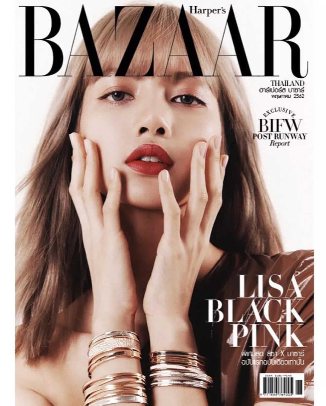 这是今年《Haprer‘s BAZAAR》泰国版五月刊封面,Lisa两手戴了大概12个BVLGARI宝格丽手镯吧。