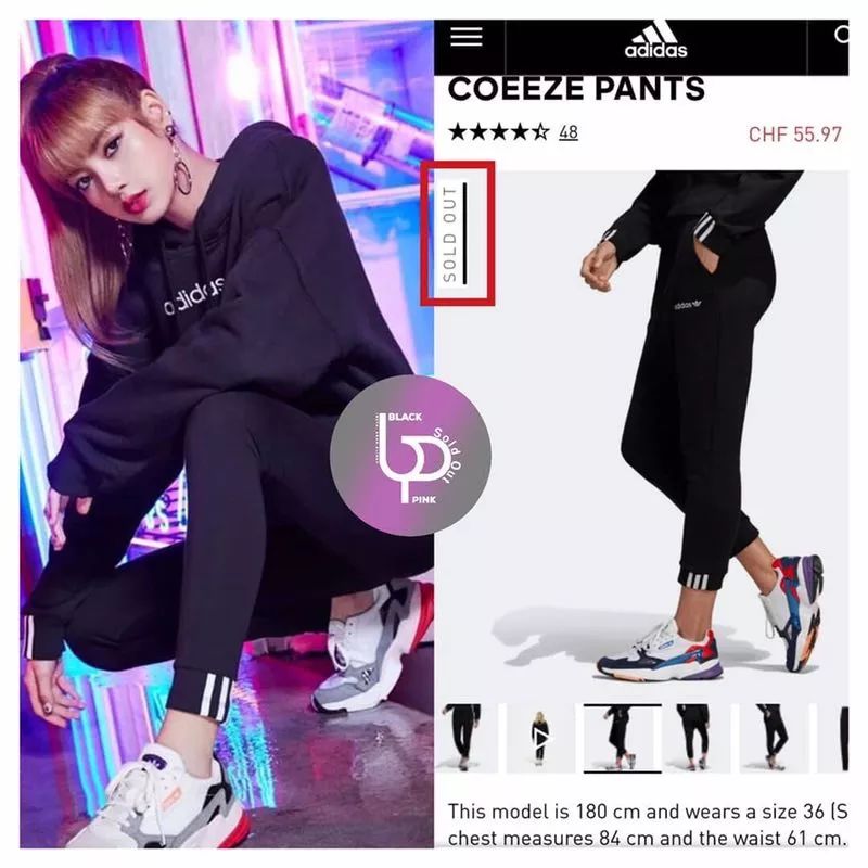 但是Lisa以其#51cm的细腰#和#长腿# 的优越性,也同样深受着adidas的喜欢。