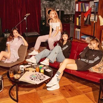 adidas软广拍摄是组合团体一起拍摄,4位女孩穿上adidas,随便一坐就成了大片。