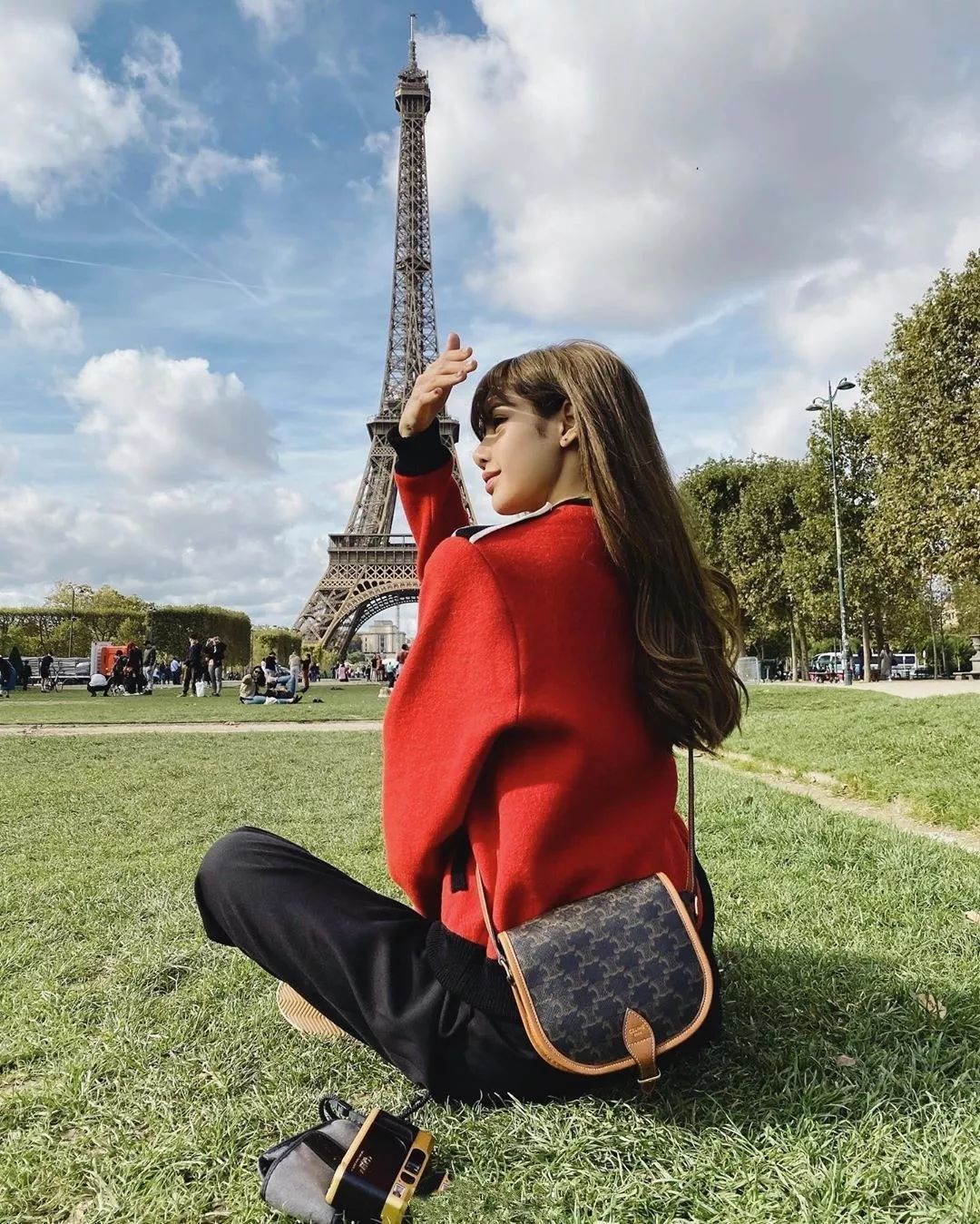 Triomphe Bag也是Lisa出街的必备款↓