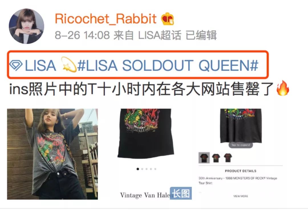 粉丝还专为她开设了一个tag#LISA SOLDOUT QUEEN#,在这个tag里面,粉丝有详尽的记录了她的带货能力,就只要Lisa穿上身的单品,在极短的时间内它们都会——SOLDOUT!