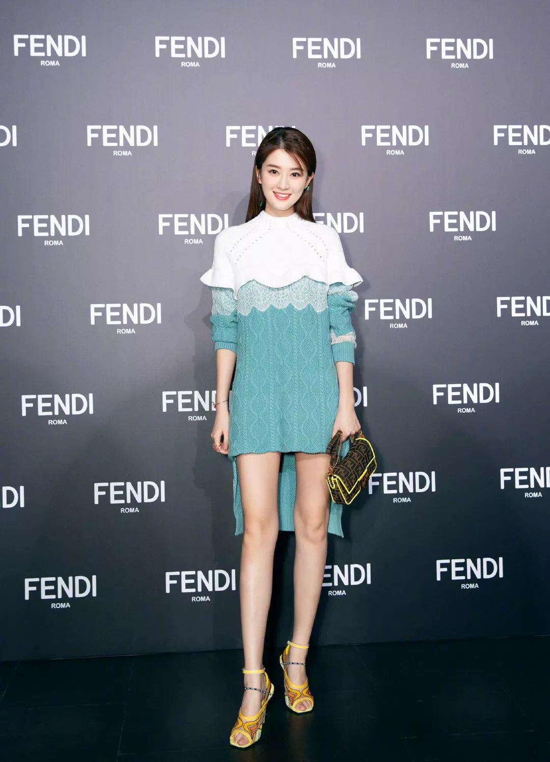 乔欣的蕾丝拼接针织裙颜色清新,较为厚重的针织面料被她穿出了清爽感。