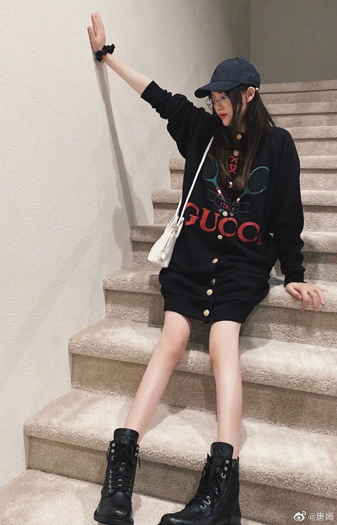 唐嫣特别偏爱针织裙,尤其是这种oversize的直筒短裙,率性又优雅,针织亲肤柔软的质地对准妈妈非常友好,搭配黑色短靴,随性舒适。