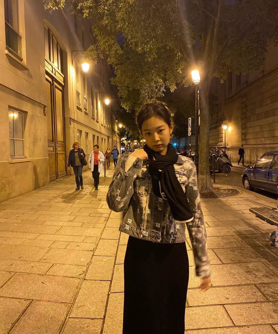 昆凌和Jennie都用牛仔夹克搭配针织裙,优雅又复古。