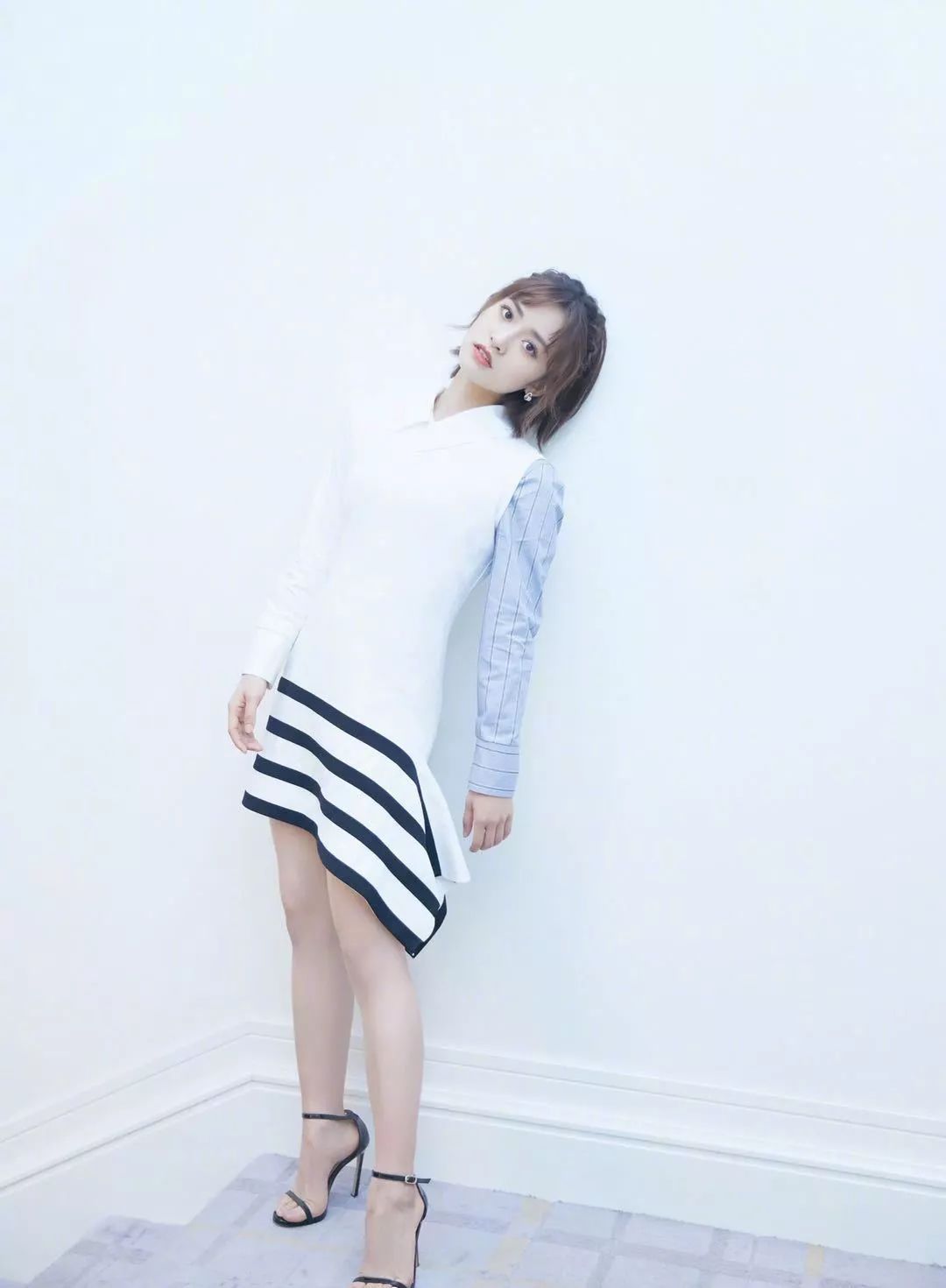 沈月用条纹针织裙搭配衬衫,清新俏皮,彰显出爆表青春力,而且看起来真的瘦了好多。