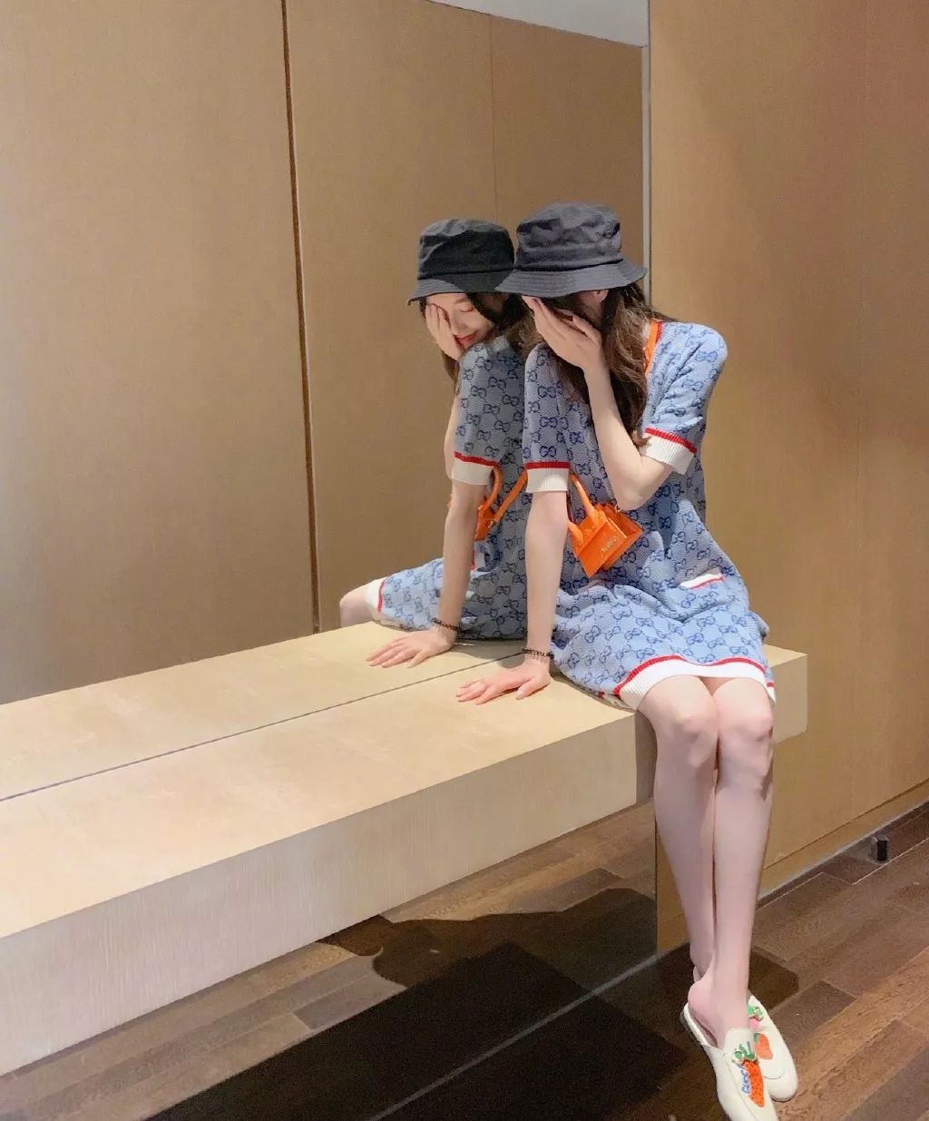 在你糖po出的为数不多的孕期写真中,针织裙存在感相当高,这条蓝色针织裙少女感十足,为什么完全看不出怀孕的样子?这腿绝了。