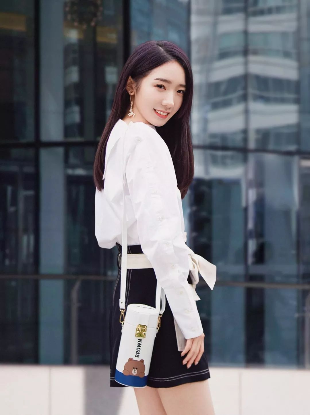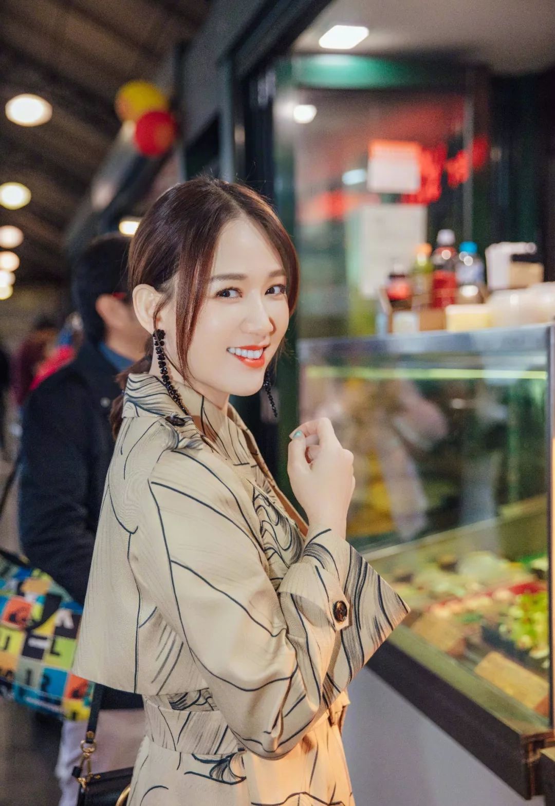 陈乔恩一袭风衣搭配后拢发型来完美融合她的日常出行,长条耳环为全身加了亮点,这样温柔随性的发型,我相信你一定爱!