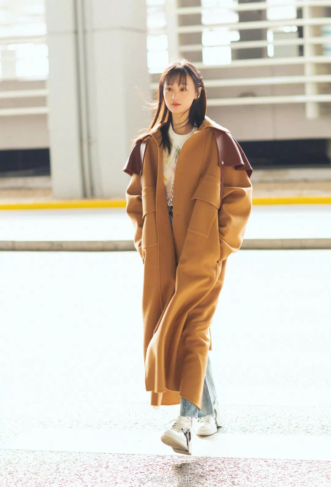 焦糖色的风衣固然很多,可少见的是像郑爽身上这种廓形拼接大衣。说到拼接学问也很大,拼接的位置形状都是特点,爽妹子的这件大衣的拼接,就拼接在了肩膀上,独特之处在于并不是全部覆盖了肩膀,而是轻便,自由的搭在了小爽的肩上,犹如一只秋日精灵。