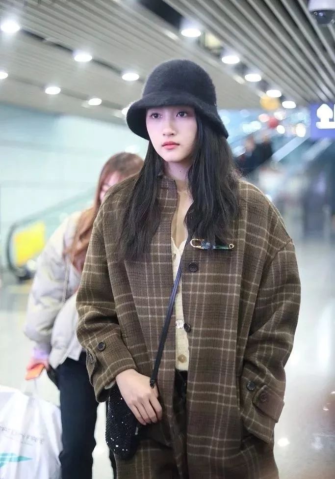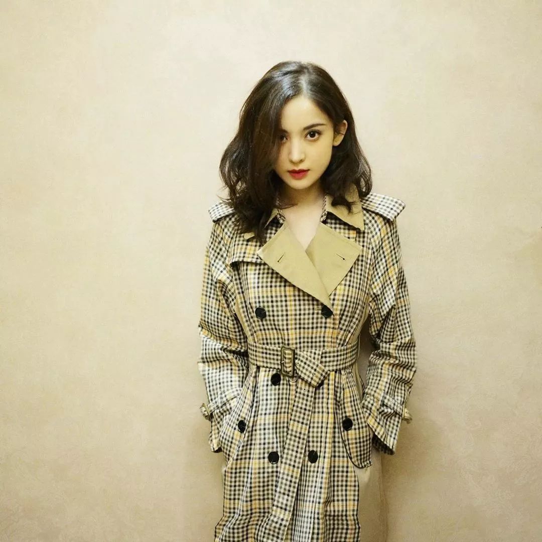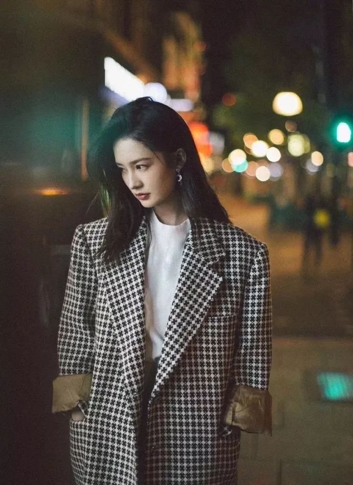李沁的格子呢大衣点点小格,黑白格子相间袖口上卷露出棕色的内衬颜色显得尤其协调,将原本白皙的肤色显得更加明亮深邃,不经意的胸省分割,宛如一个女人上升的灵魂。