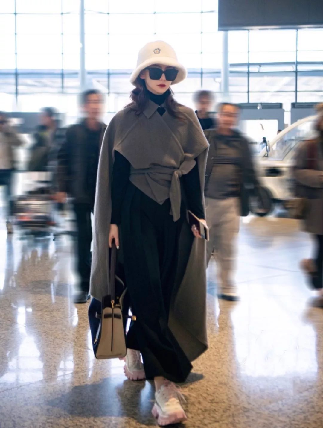 戚薇的衣品和气质也是一绝,戚哥也没能少得了一件特别的大衣。小方领,大披肩,胸前交错的设计就代表了这件衣服的全部设计,两边不同的带子随意一束,就变成了最时尚的造型。前短后长的披肩系带设计,真是欣赏美丽路上一道绝妙风景。