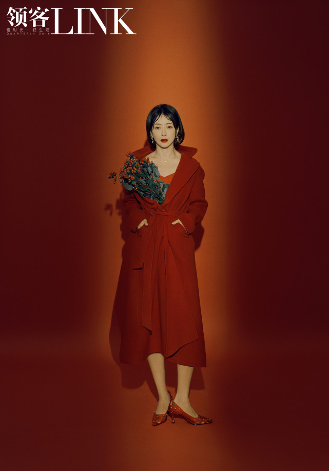 一袭复古红连衣裙,额发微卷红唇犹如烈焰,颈间搭配红色丝巾手上佩戴同色系长款皮质手套,端庄婉约,魅惑十足。外罩红色开司米羊绒大衣,脚踩猫跟小皮鞋宛如上世纪的摩登女郞。静谧蓝露肩上衣与包臀裙套装更衬纤腰盈盈一握,曲线优美,露出的小腿曲线圆润纤细更显精致,高马尾偏分刘海活泼大方,有了环形耳饰的点缀又增添了一丝俏皮。V领泡泡袖白色短款西装与红色纱裙演绎摩登新复古,高开叉下纤细美腿若隐若现,妩媚大方。剪裁合身的乳白色职业装时尚简洁,秒变“霸道女总裁”。当然,冬季怎能少了温暖棉服的包裹,一袭电光蓝面包服手持蓝色花朵香肩微露,娇艳花朵也敌不过绝美脸庞。新年刊中陈紫函或静或动风姿妍丽,气质明艳动人,俨然一副“致命女人”的绝美样子。