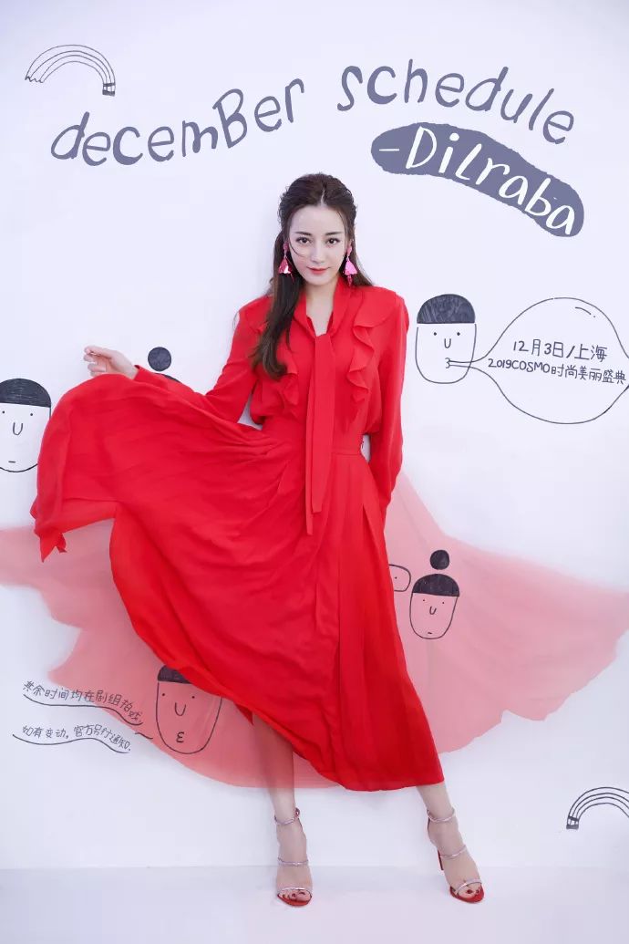 迪丽热巴的红色耳环也很绝,一袭红裙相互呼应,提前跟大家一起迎接新年,过年聚会、见亲戚,一副大型耳环就能撑起半边天。