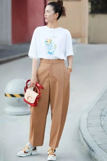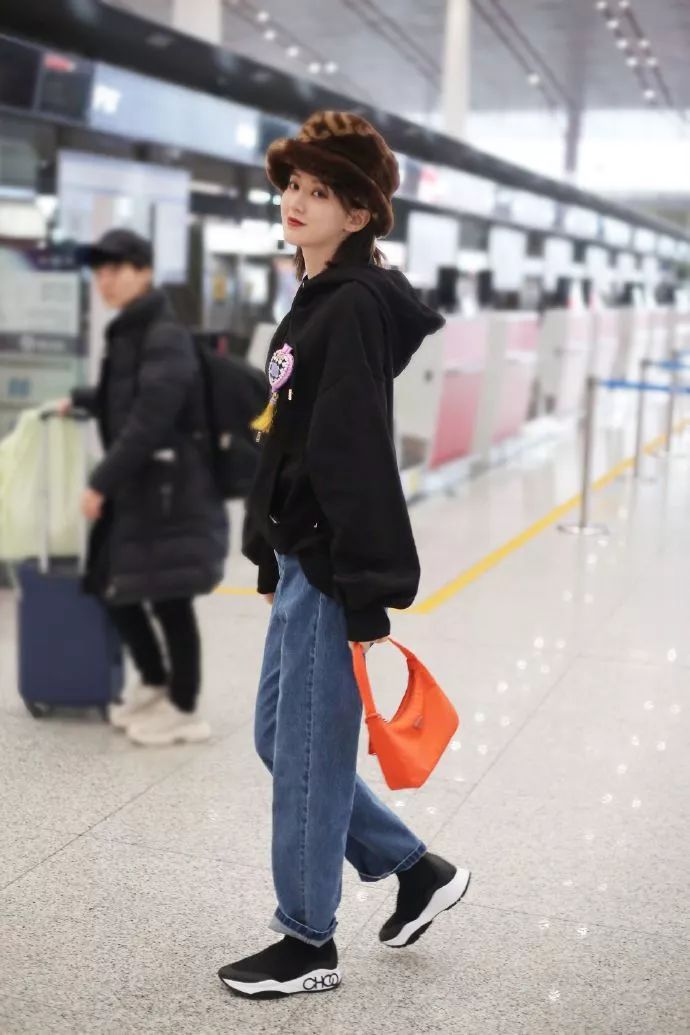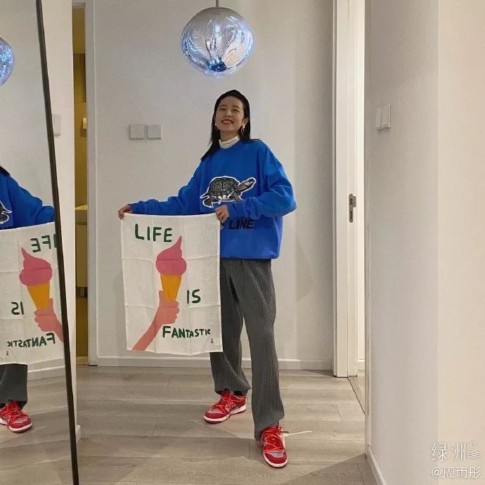 运动鞋可以穿的场合就更多了,像是周雨彤的蓝色卫衣搭配红色运动鞋,撞色搭配很有喜庆的氛围鸭。