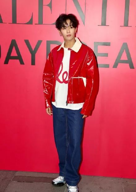 短外套比大衣更加时髦易穿,李汶翰穿上这件红色漆皮外套一下在人群中脱颖而出,只搭配白T和牛仔裤就能杀很大,男生女生都能穿。