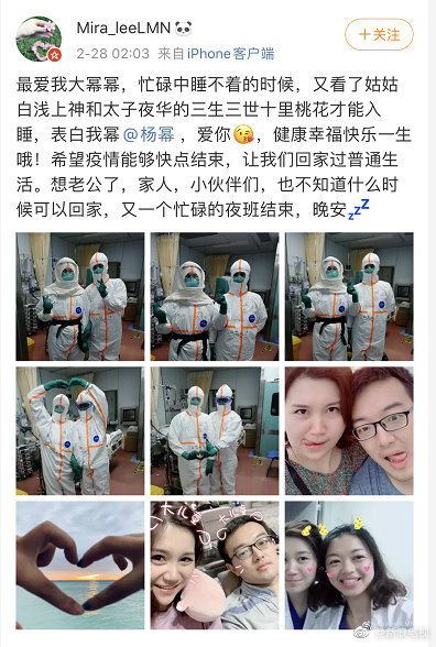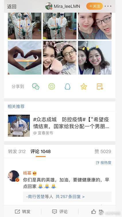 - ⊙ 杨幂微博回复 支援前线医护粉丝是