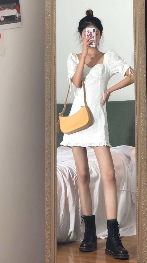 看看这套法式连衣裙,领口采用方领设计大方地展现锁骨,融入泡泡袖,遮住手臂的肉肉,下摆是荷叶边的设计,无敌显腿长,整身look大方温柔~