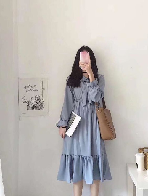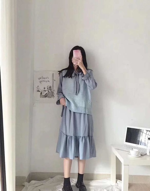 除了白色连衣裙,当然也不能放过各色的荷叶边裙子,其中当属水蓝色连衣裙最为出彩~这个颜色视觉上就给人很舒服的感觉,裙边的荷叶边拼接让这条连衣裙更加温柔,胸前的绑带设计为整身look增添亮点,设计感满满耶~天气凉的时候还可以搭配同色系的马甲,丰富层次感,有风度有温度~