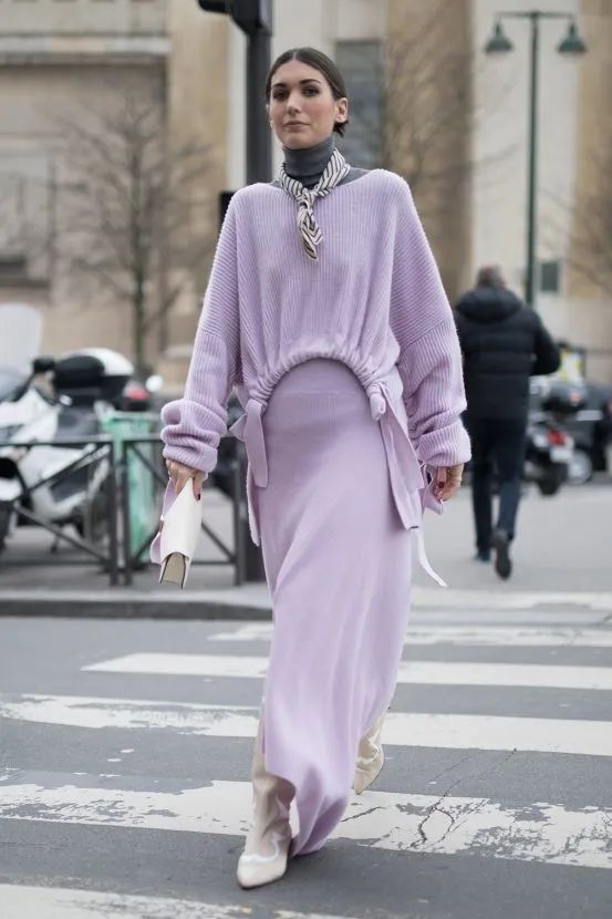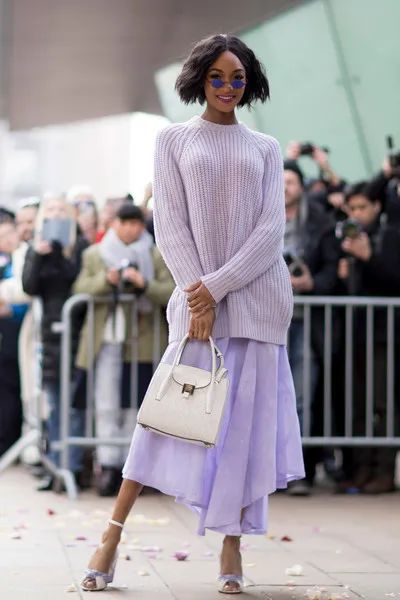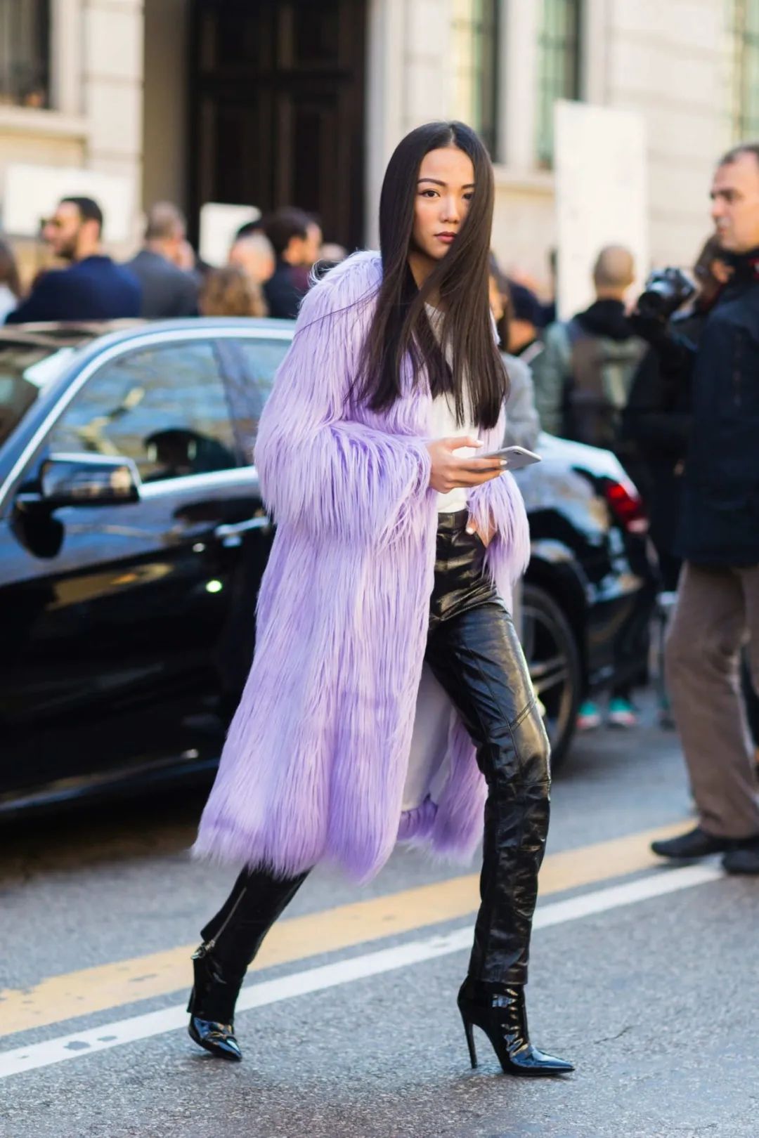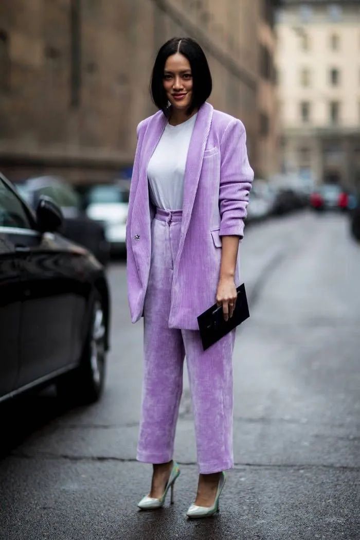 许多时髦博主会选择一整套紫色行头出街,即炫彩又不过于跳跃。