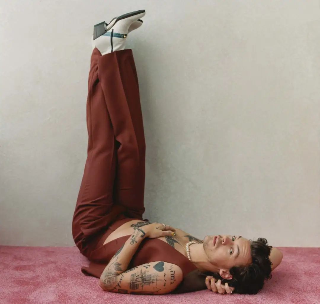 让人想起Harry Styles对珍珠项链的演绎,在一条基本款的大圆珍珠项链下,再叠加一条金属项链,不是异曲同工的手法么。